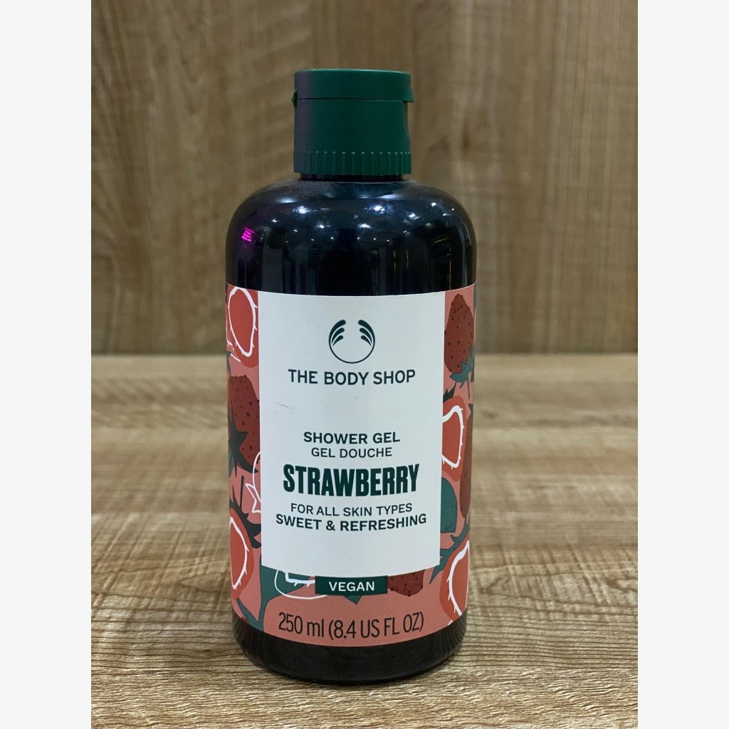 The Body Shop Strawberry Shower Gel:This shower gel is described as “SWEET & REFRESHING” and is suitable “FOR ALL SKIN