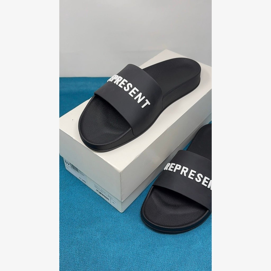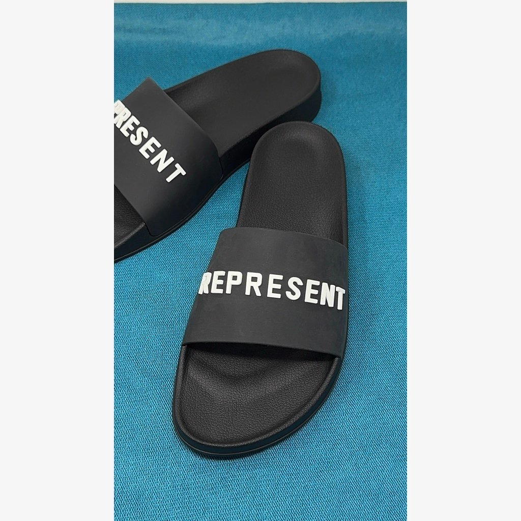 Manchester-based streetwear brand Represent is the brainchild of brothers George & Michael Heaton. Perfect for poolside, these slides are crafted