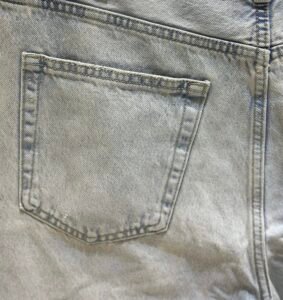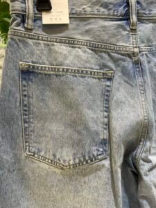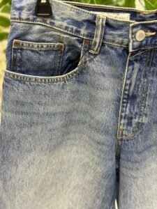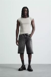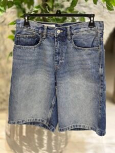 Cotton denim baggy fit Bermuda shorts. Five pockets. Faded effect. Irregular hem. Zip fly and button fastening. Style: 4365/309/802