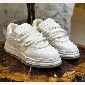 The sneakers feature a lace-up fastening with thick, rounded laces and a padded tongue and cuff. They are generally true to