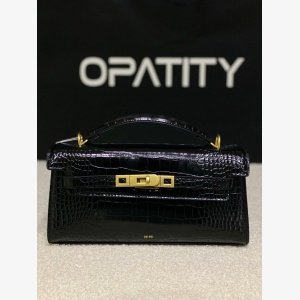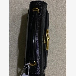 black crocodile-embossed handbag from the brand JW PEI It features a classic structured silhouette with a croc-embossed texture and sleek gold-tone hardware.
