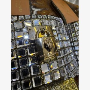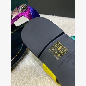 Kurt Geiger London Kensington T-Bar Sandal, a signature style known for its vibrant metallic design and iconic embellishments.