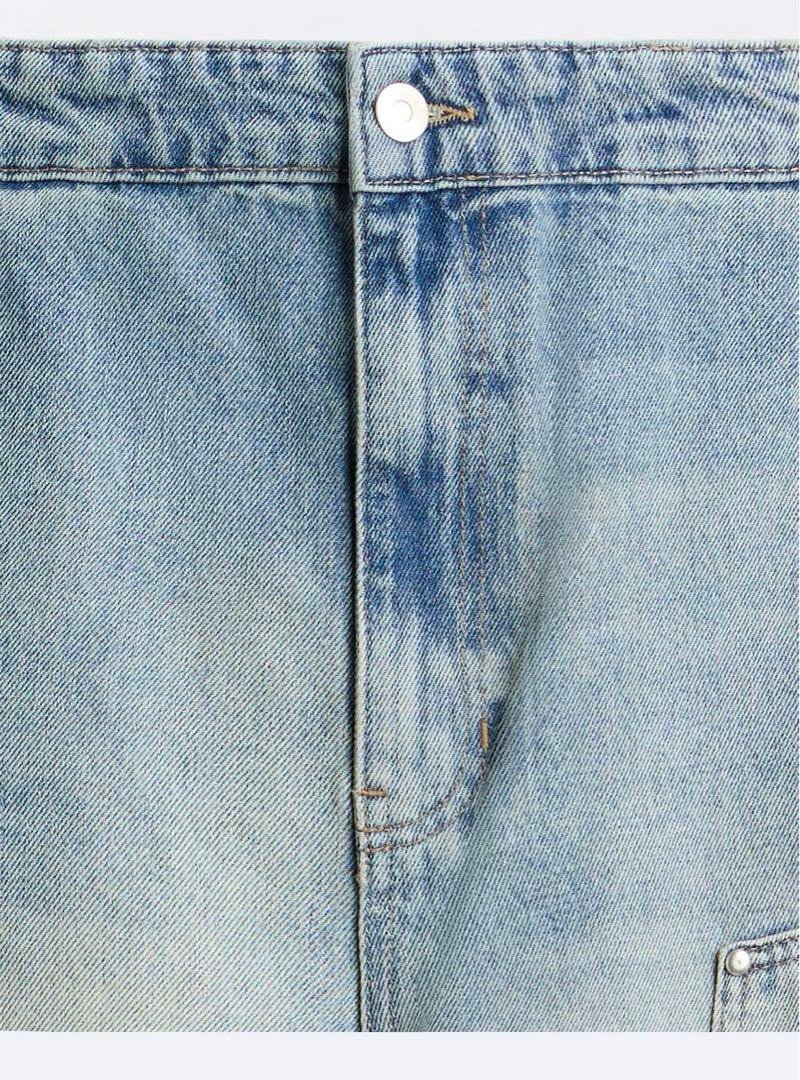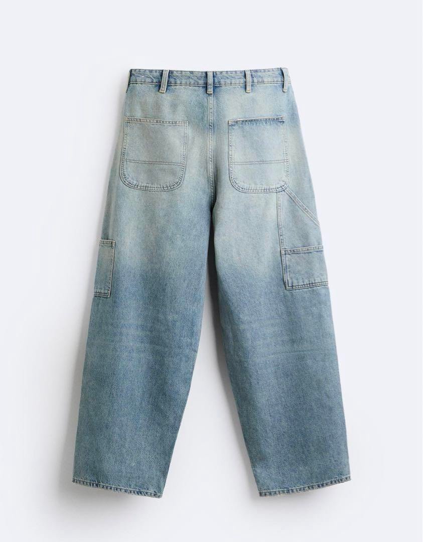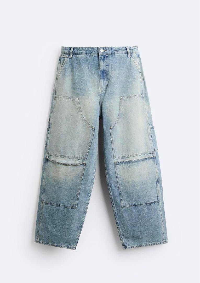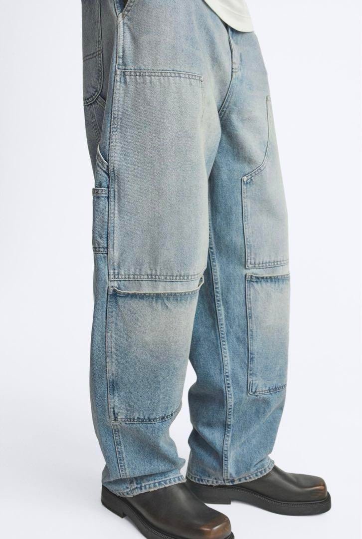 These Zara Pocket Utility Denim Pants are made of 100% cotton, offering both comfort and durability. They feature a stylish zipper closure and a 30-inch inseam for a modern fit. The pants are machine washable for easy care and are ideal for trendy outfits that make a statement.