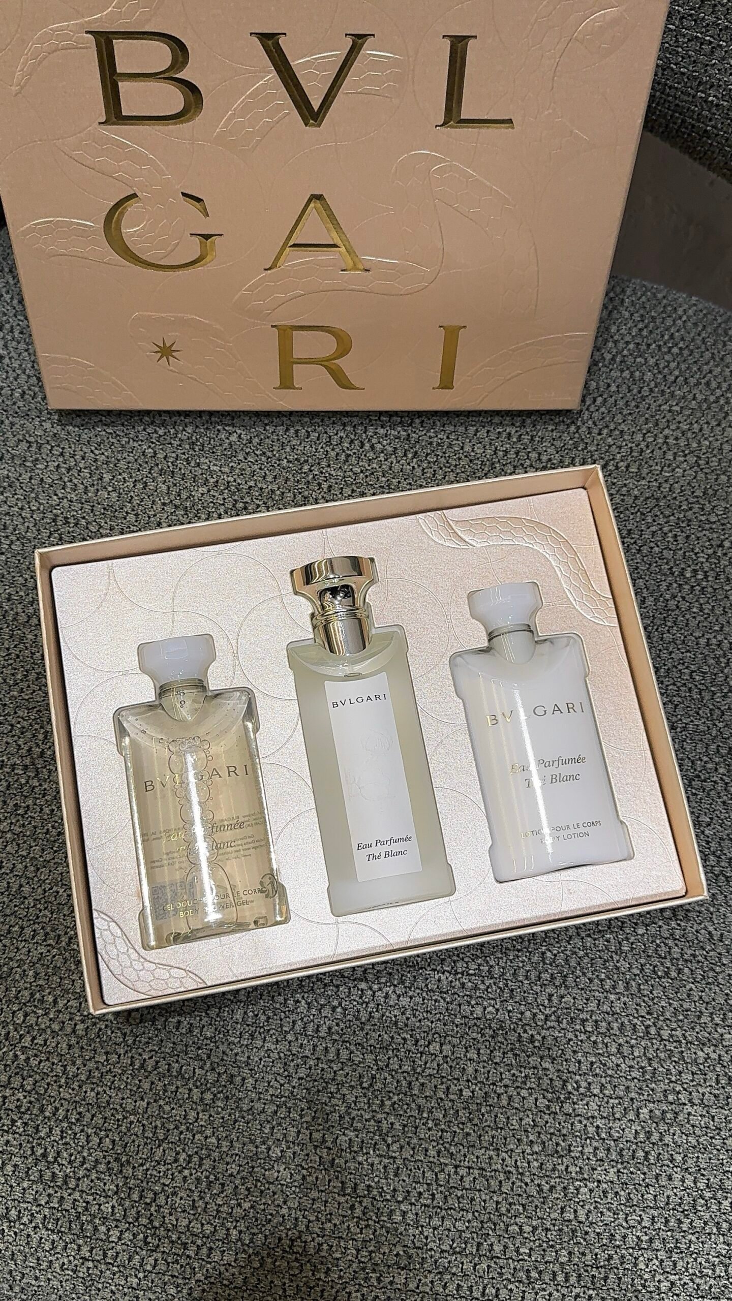 Immerse yourself into the enchantment of BVLGARi gift set perfume and celebrate the magic of gifting with the Eau Parfumée Thé Blanc Christmas set containing a 75 ml Eau de Toilette, a 75 ml Body Lotion and a 75 ml Shower Gel.
