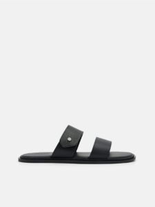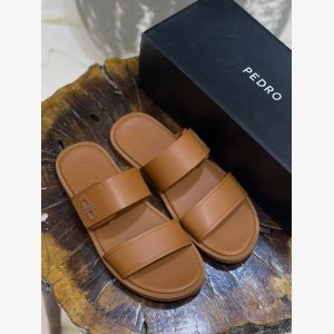 Crafted from high-quality leather, these sleek slides feature a minimalist design and comfortable fit. Perfect for warm weather or casual