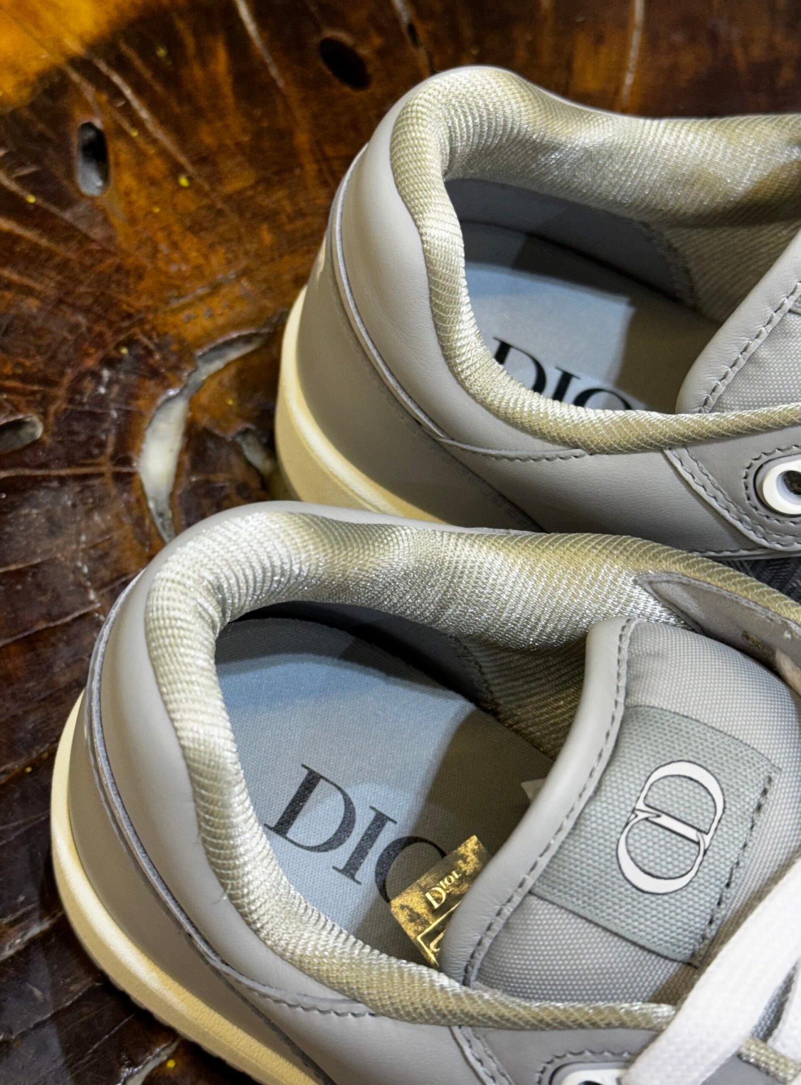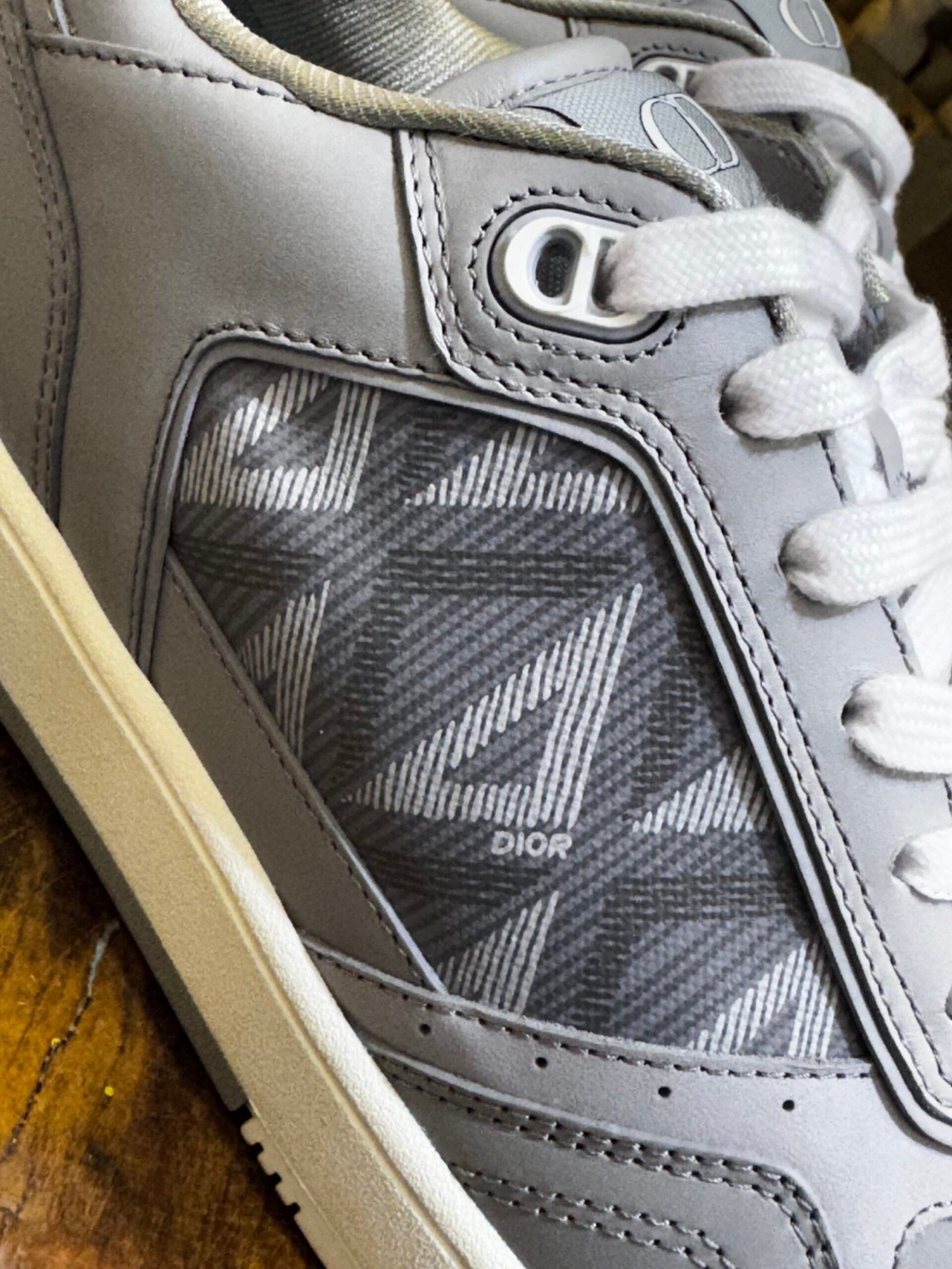 It is adorned with tonal CD Diamond canvas inserts on the sides, which reimagines the House initials in a graphic diamond pattern. The sneaker includes “CD Icon” eyelets and is further enhanced with numerous signature Dior details on the tongue, sole, and heel. It features a lace-up front for a secure fit and a cushioned rubber sole designed for comfort and everyday wear.
