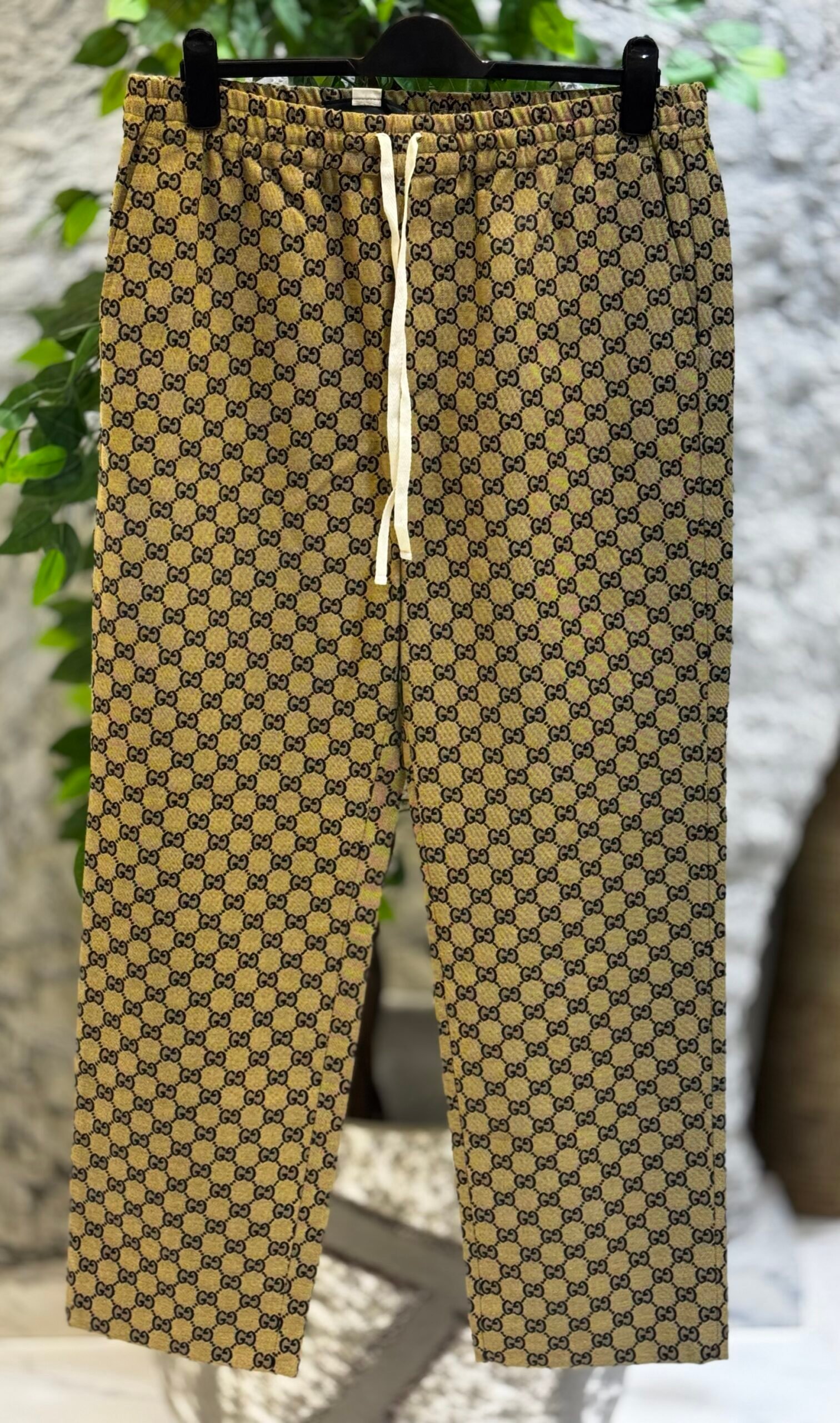 Combining comfort and contemporary fashion, these Gucci pants elevates a casual style with beige and blue GG motif printed canvas and a flattering straight leg fit.