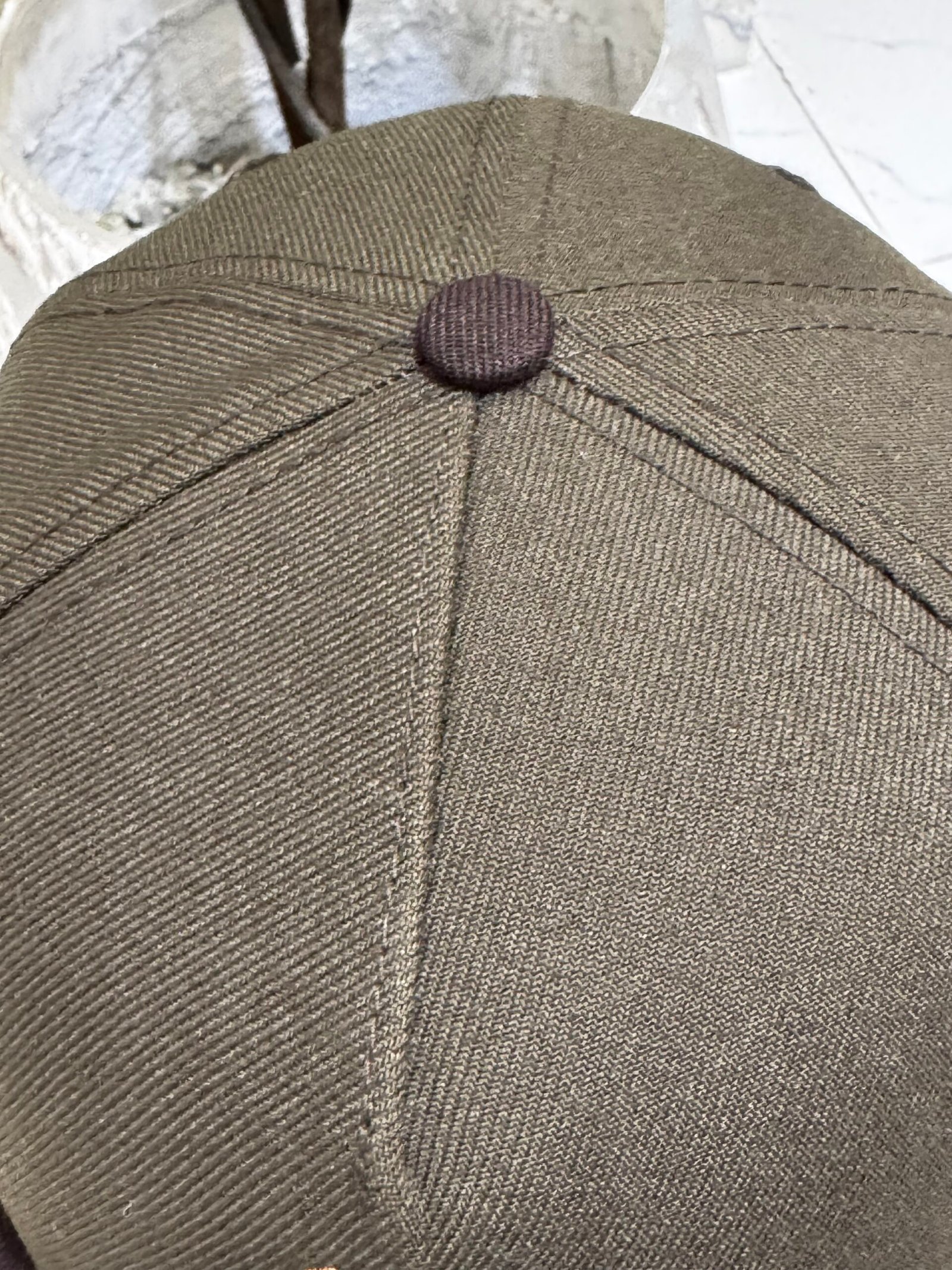 It is made from 100% cotton denim fabric with a washed, vintage effect. The front of the cap features a
