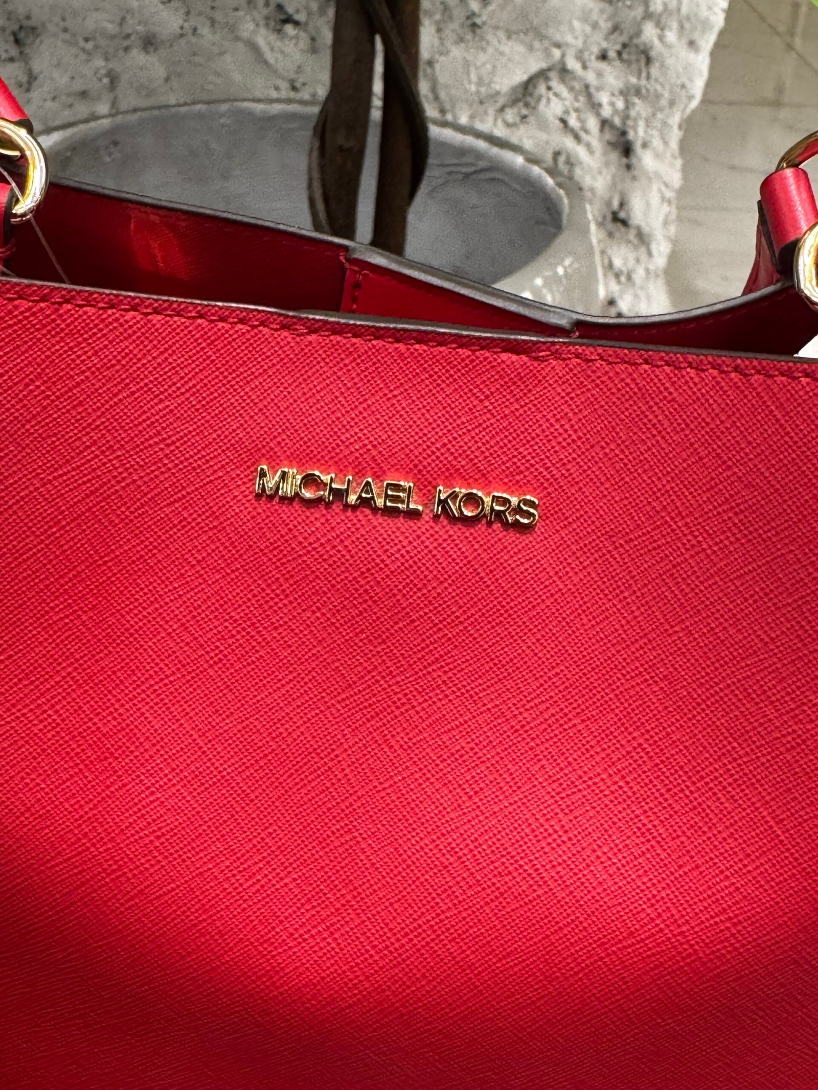 - Hardware: The bag is accented with gold-tone hardware, including the “MICHAEL KORS” logo on the front.