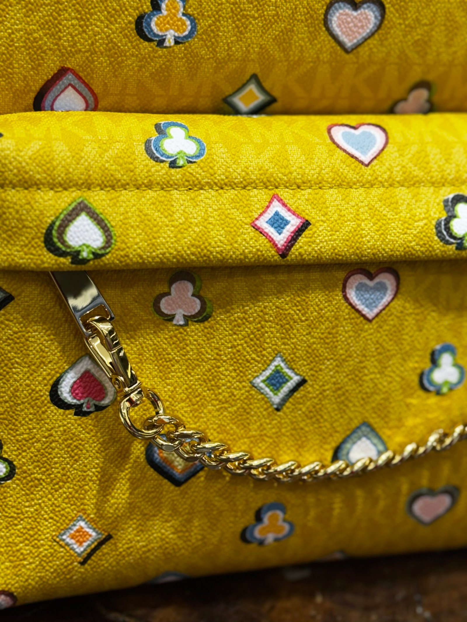 - Design Details: Includes gold-tone hardware and a signature removable front chainaccent.