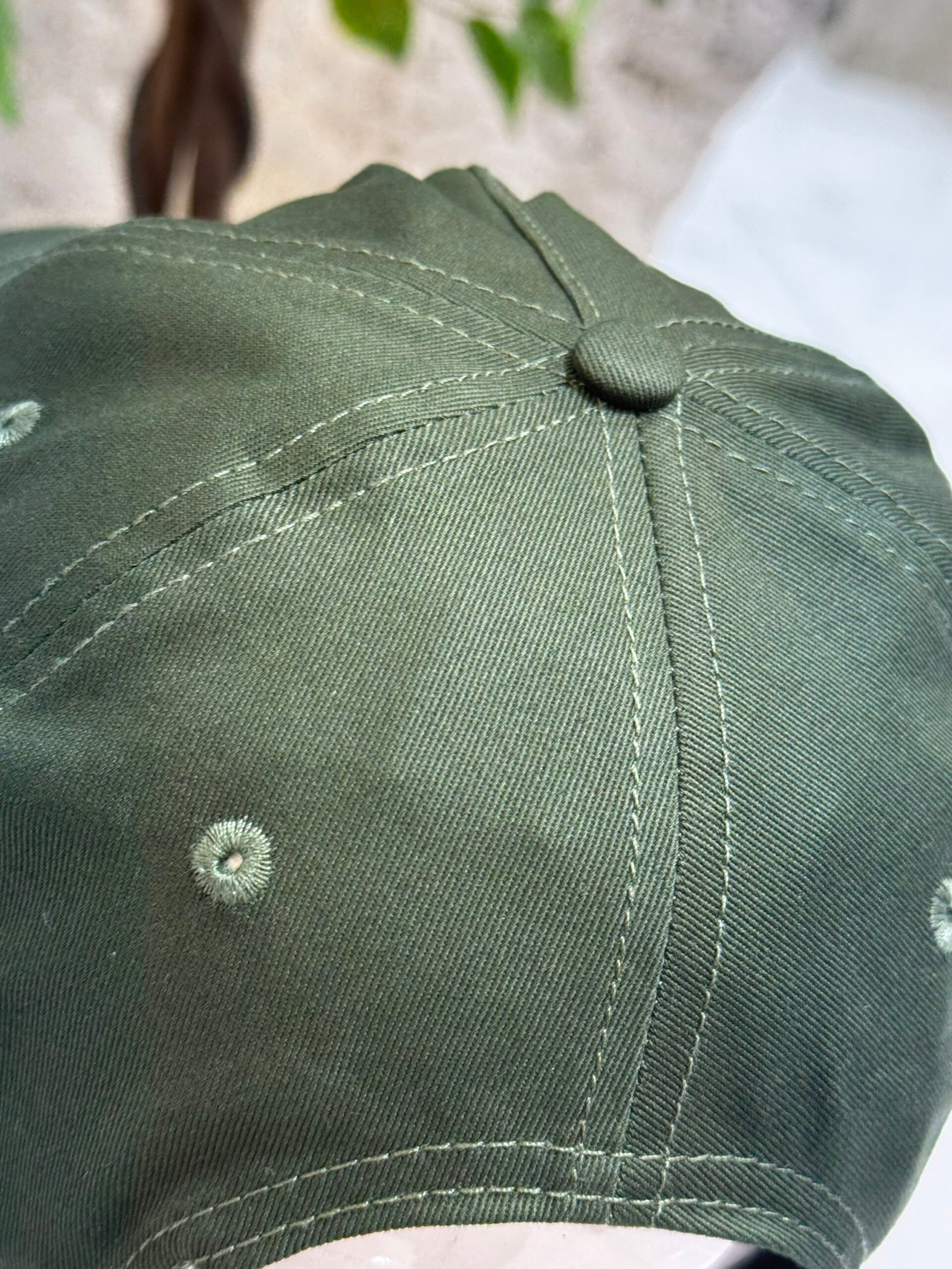 It is made from 100% cotton denim fabric with a washed, vintage effect. The front of the cap features a