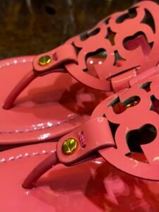 Design: This flat slide sandals featuring a wide strap across the foot. The strap prominently displays the iconic Tory Burch Double
